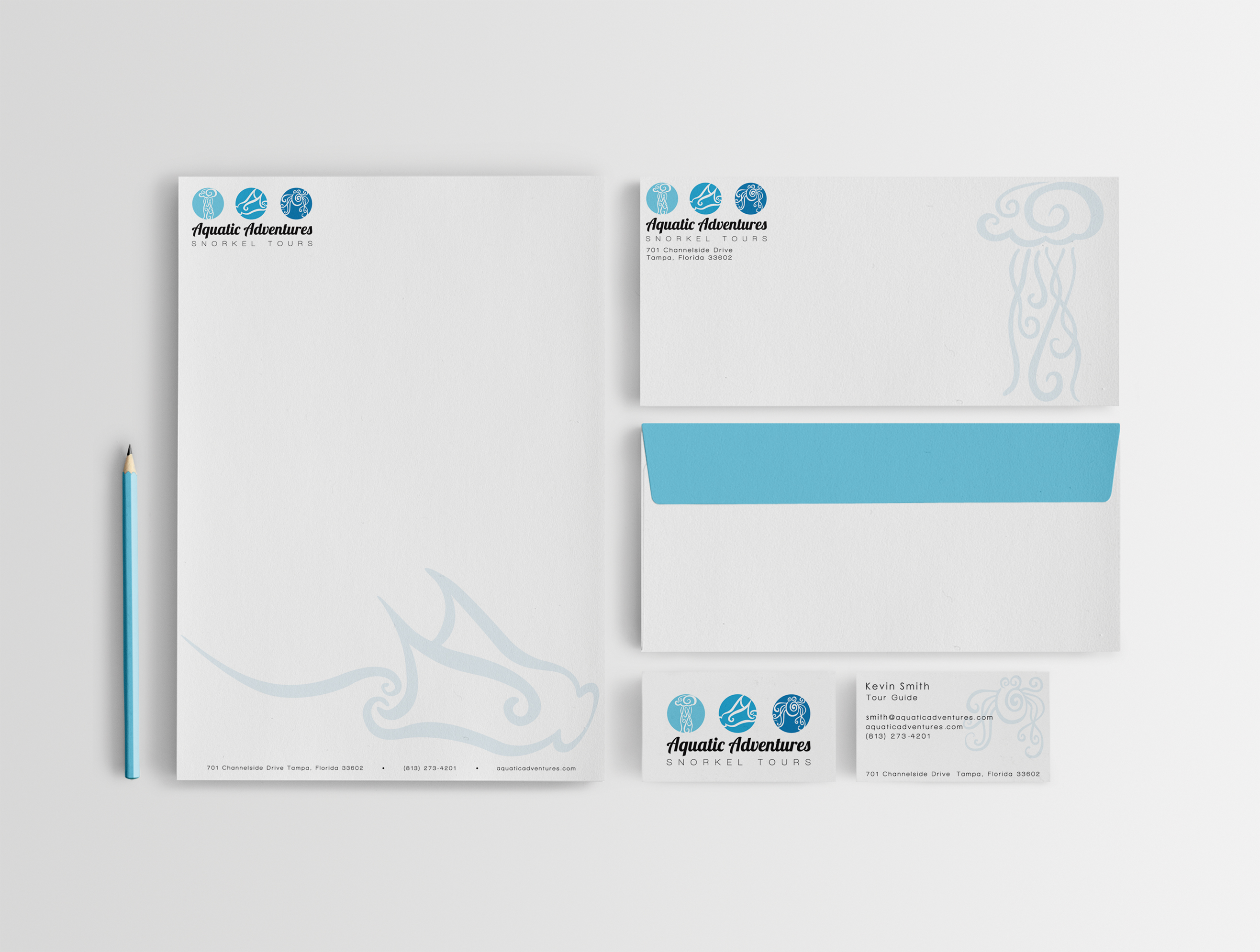 jellyfish, and octopus give the logo a unique and own able feel. The branding begins on